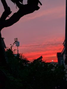 少し復活し始めた草花、札幌の友人からのきれいな夕焼けと